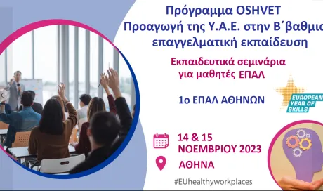 Εκπαιδευτικά σεμινάρια για την Υγεία & Ασφάλεια στην Εργασία στον χώρο της δευτεροβάθμιας επαγγελματικής εκπαίδευσης / Πρόγραμμα OSHVET – ΑΘΗΝΑ, 14 & 15 Νοεμβρίου 2023